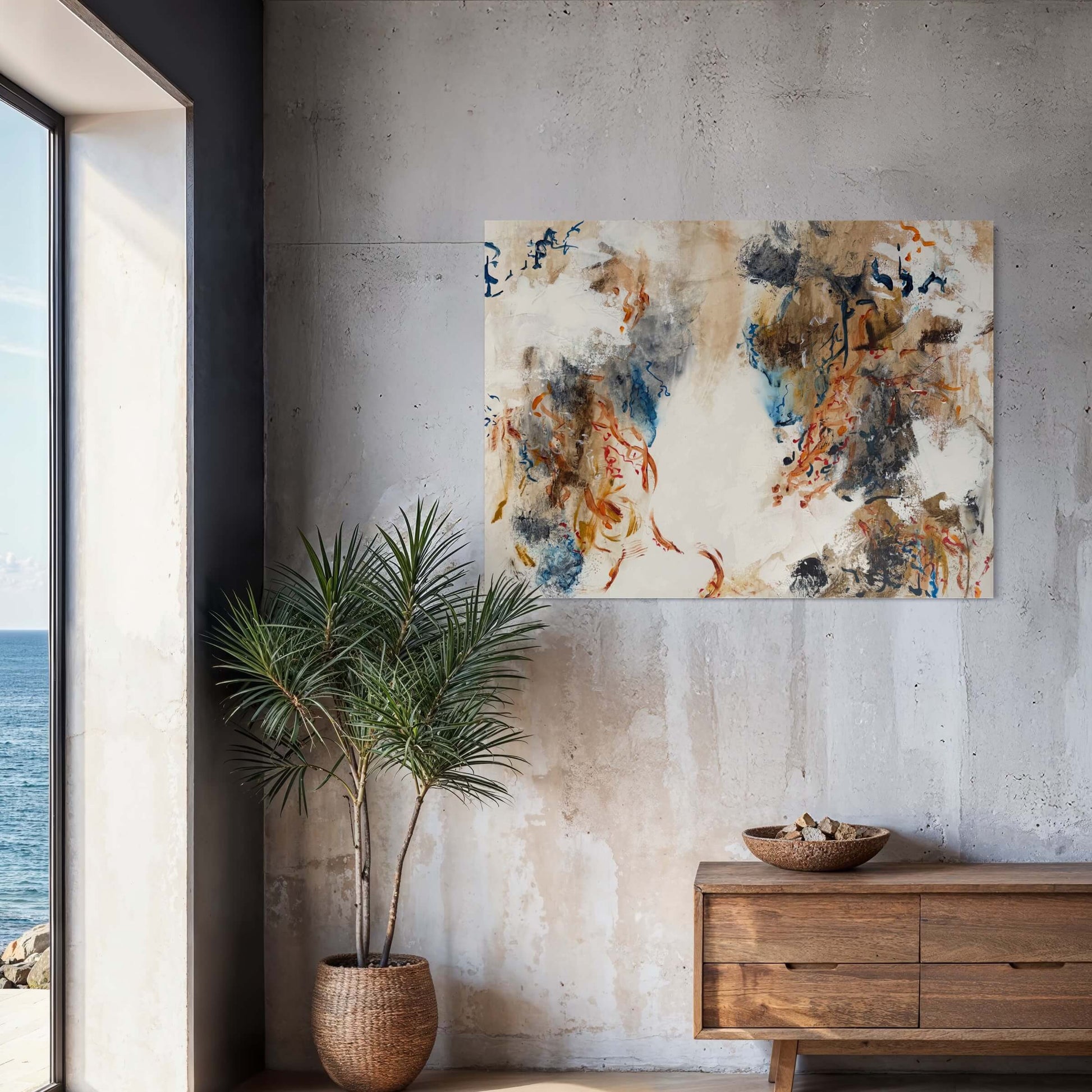 This painting comes ready to hang. 30" x 40" unframed on 38mm deep wrapped professional grade canvas. Signed on the front.