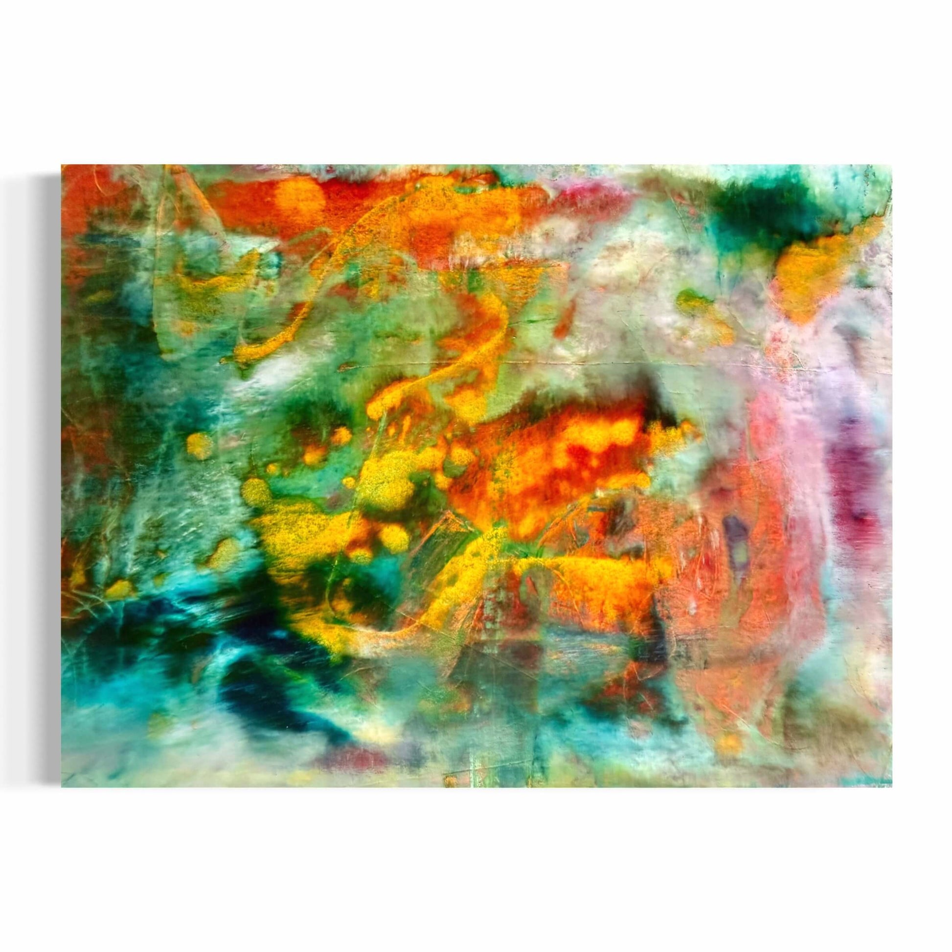 She is made using oil paints and cold wax so needs time to cure. Available to order now and will be shipped in January.