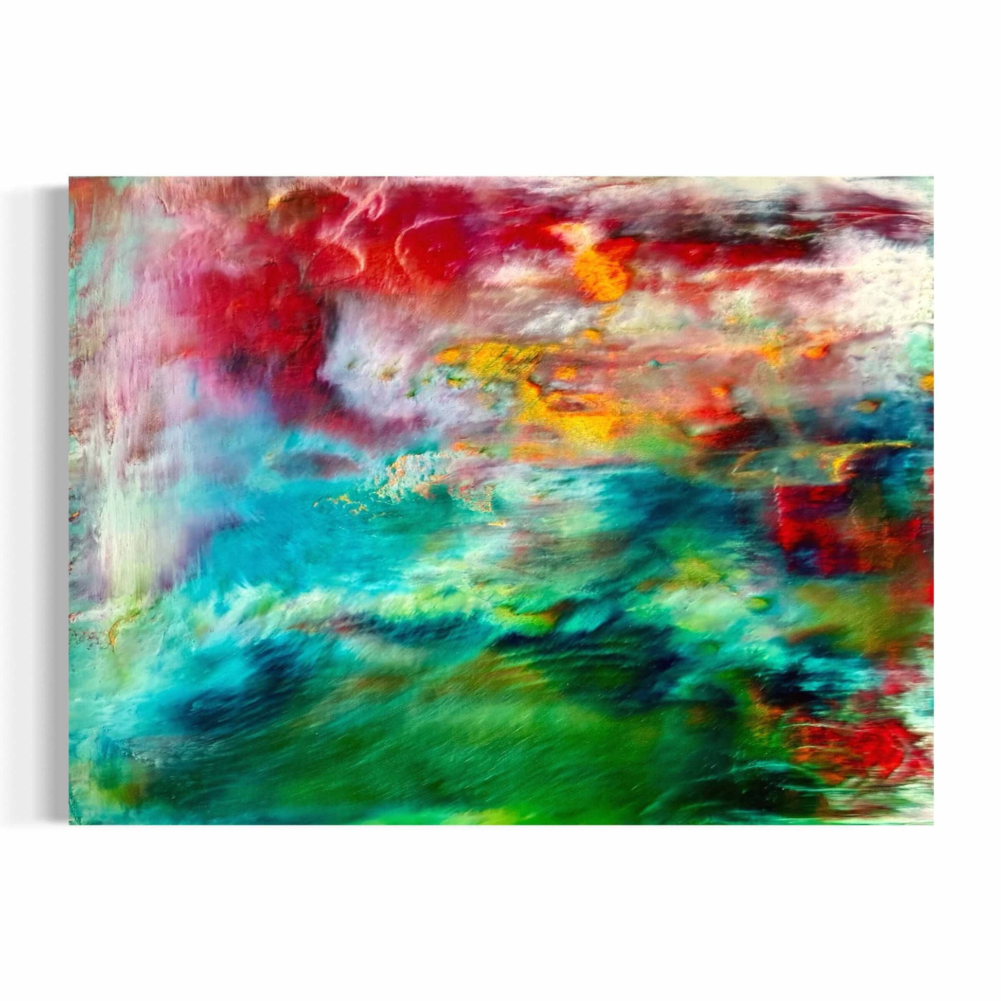She is made using oil paints and cold wax so needs time to cure. Available to order now and will be shipped in January.