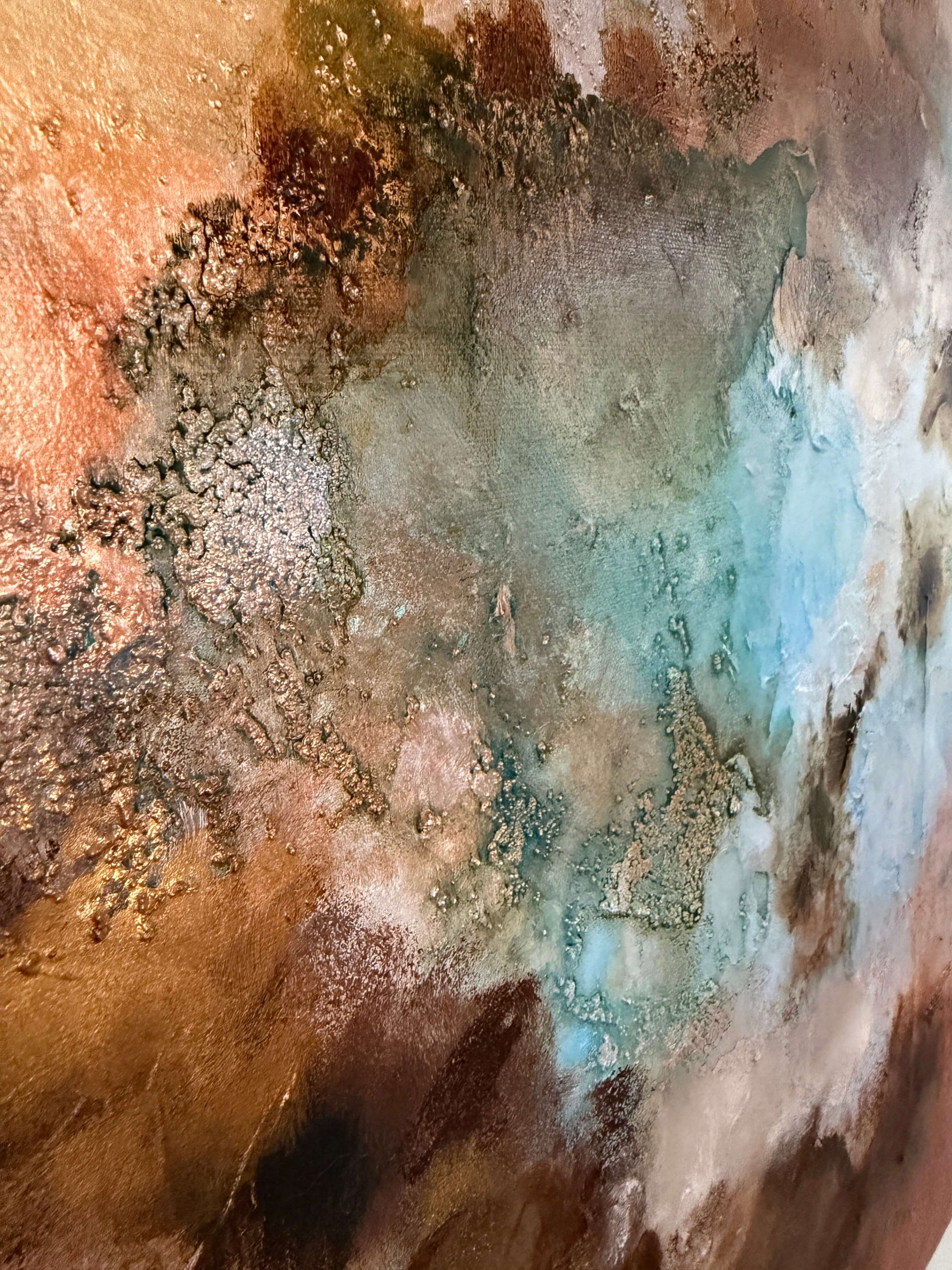 She's painted in coppers and golds with texture and has an glowing underwater vibe that this photo doesn't really do justice to, so if you think she might be yours and you'd like a little video of her, let me know.