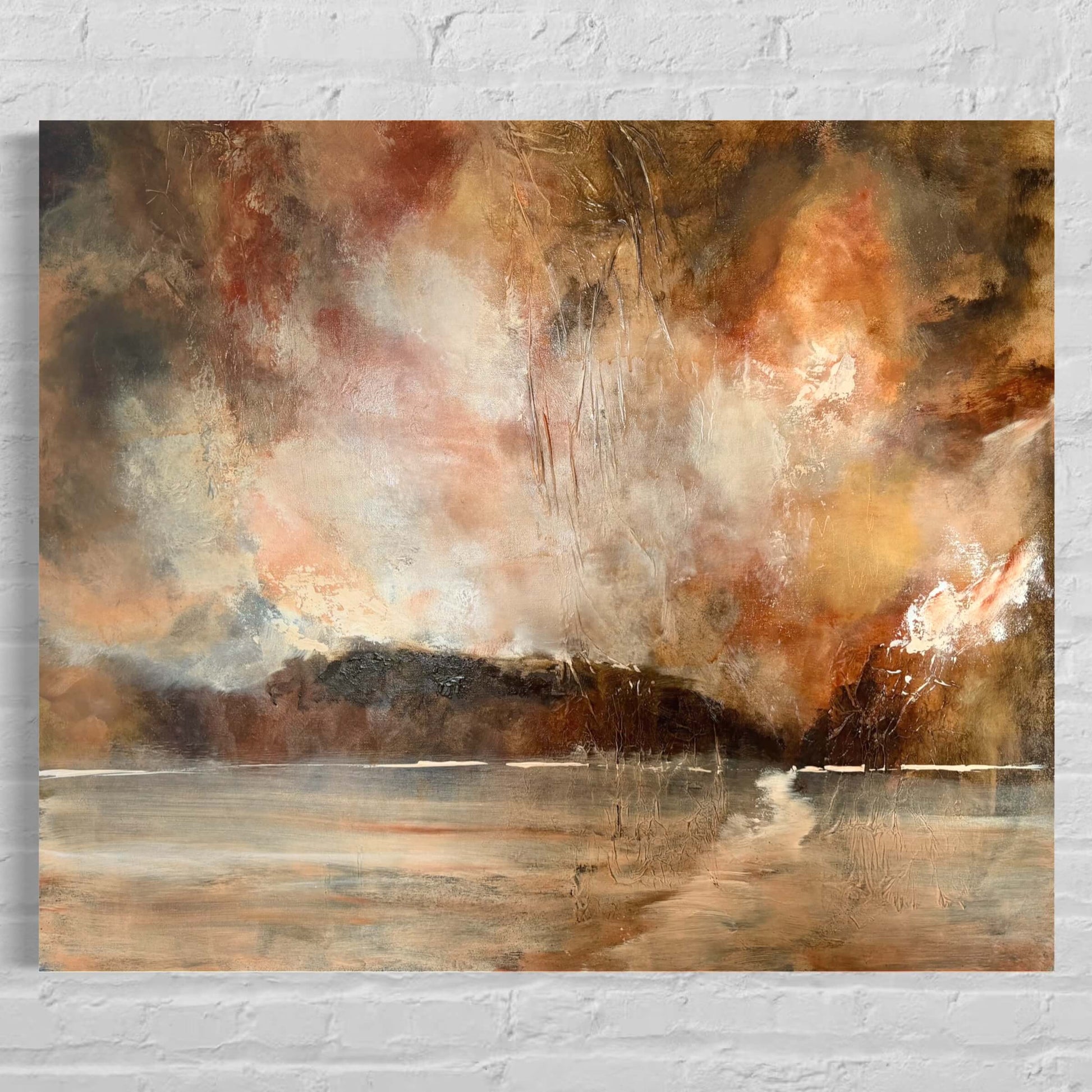 A golden landscape stretching beneath vast, luminous skies - she captures the sacred meeting point between the earthly and the divine.